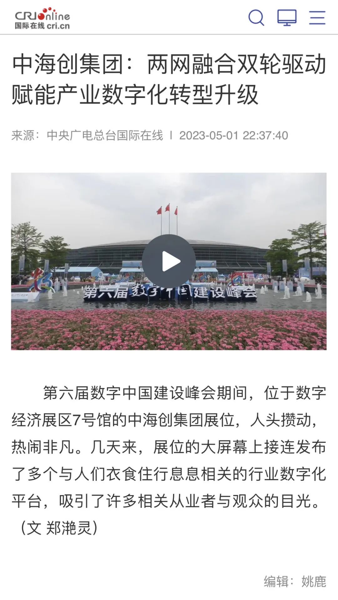 央广国际在线报道中新利首页:两网融合 双轮驱动 赋能产业数字化转型升级